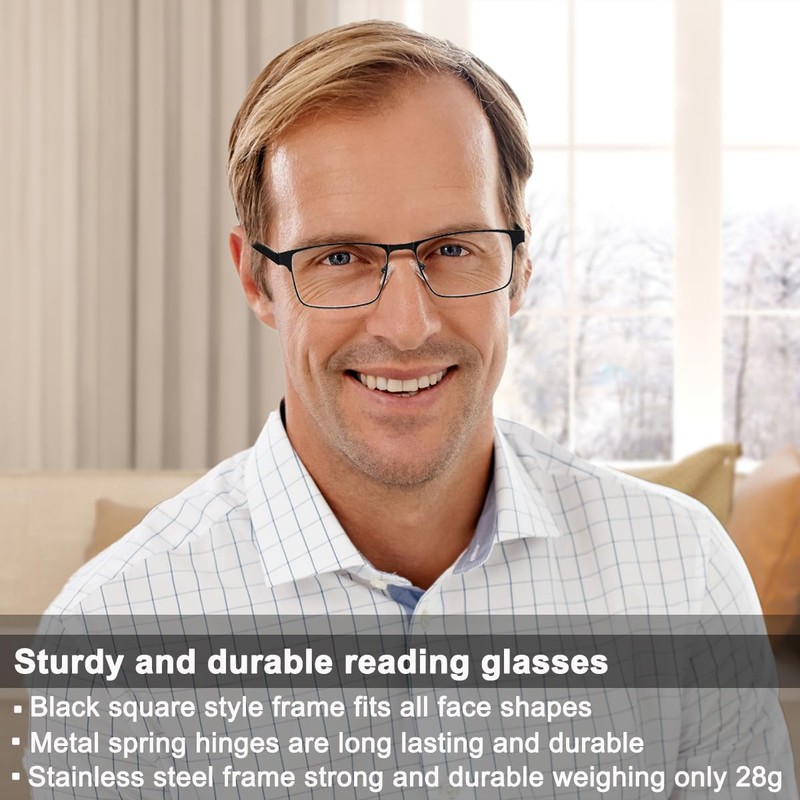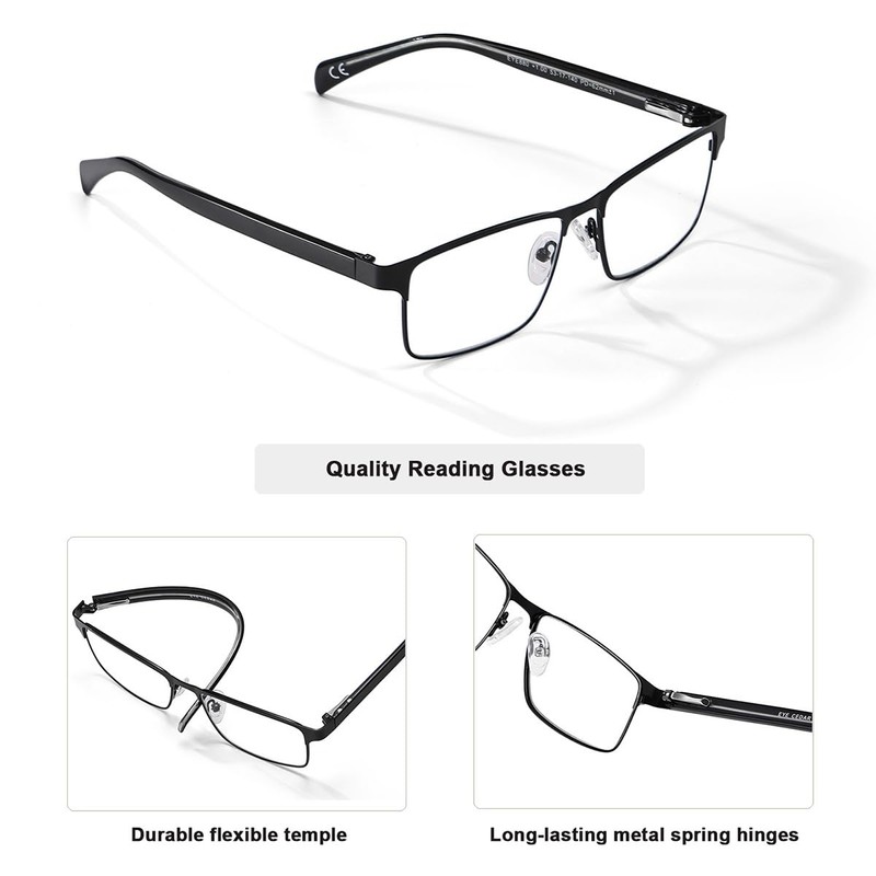 • EYECEDAR reading glasses for men with 2-year quality promise and friendly after-sales service; Exquisite simple full-rim style elegant thin texture, metal spring hinge temples can be bent to adjust the curvature to adapt to the shape of the face