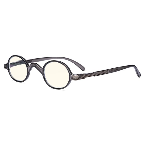 Eyekepper Blue Light Filter Glasses - Computer Reading Glasses - Small Round Blocking Readers Reading with Spring Hinges - Grey +2.00