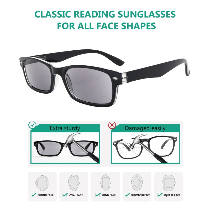 • ♥ Classic frame design – beautiful cheater sunglasses with a solid design. Vintage sunshine readers are suitable for different face types.