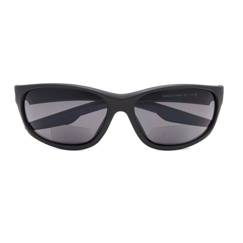 Eyekepper TR90 Unbreakable Sports Bifocal Sunglasses Baseball Running Fishing Driving Golf Softball Hiking Matte Black-Blue Frame Grey Lens +1.75
