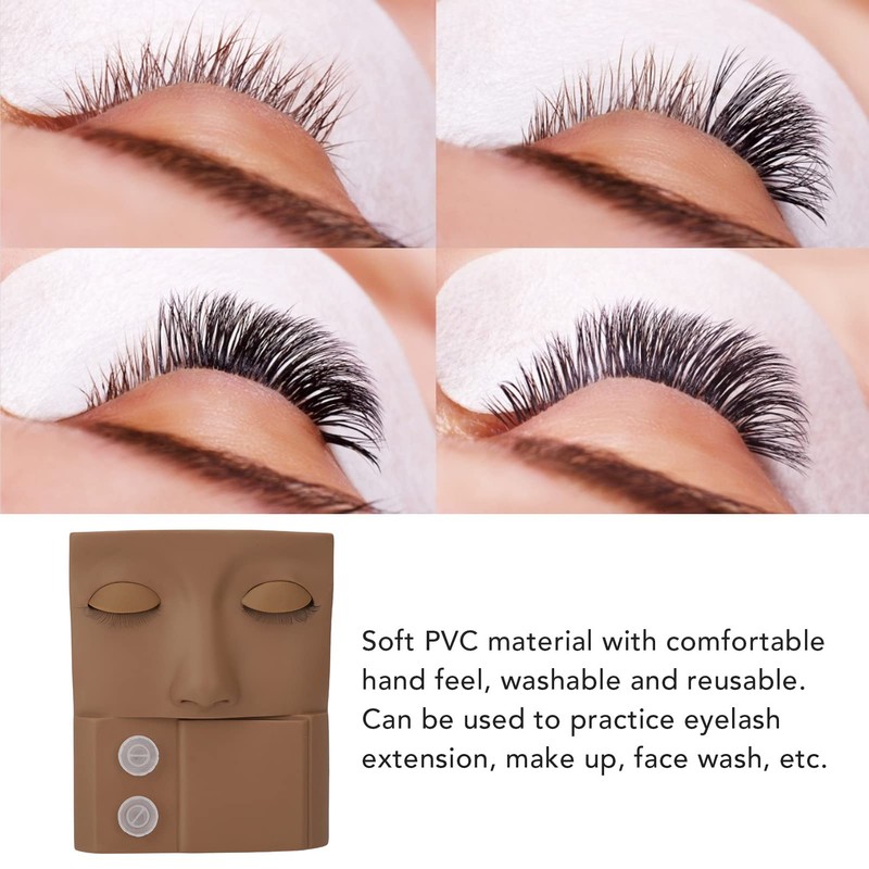 Eyelash Extension Mannequin, PVC with High Simulation, Easy Cleaning, Reusable Eyelash Mannequin Head, Better Exercise for Training (Coffee Colour)