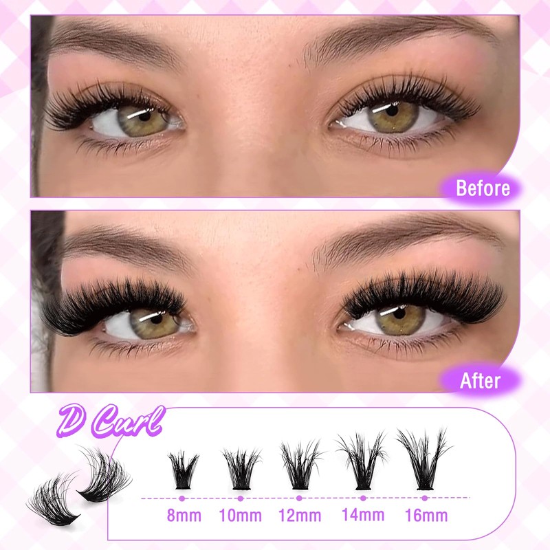 - 8-16 mm upgrade against cluster eyelashes: our eyelashes are different from normal individual eyelashes, these 8-16 mm voluminous and fluffy eyelash clusters with wider eyelash band, which can give a denser appearance of the eyelash extension with fewer eyelash clusters. Easy to use. Save time and money