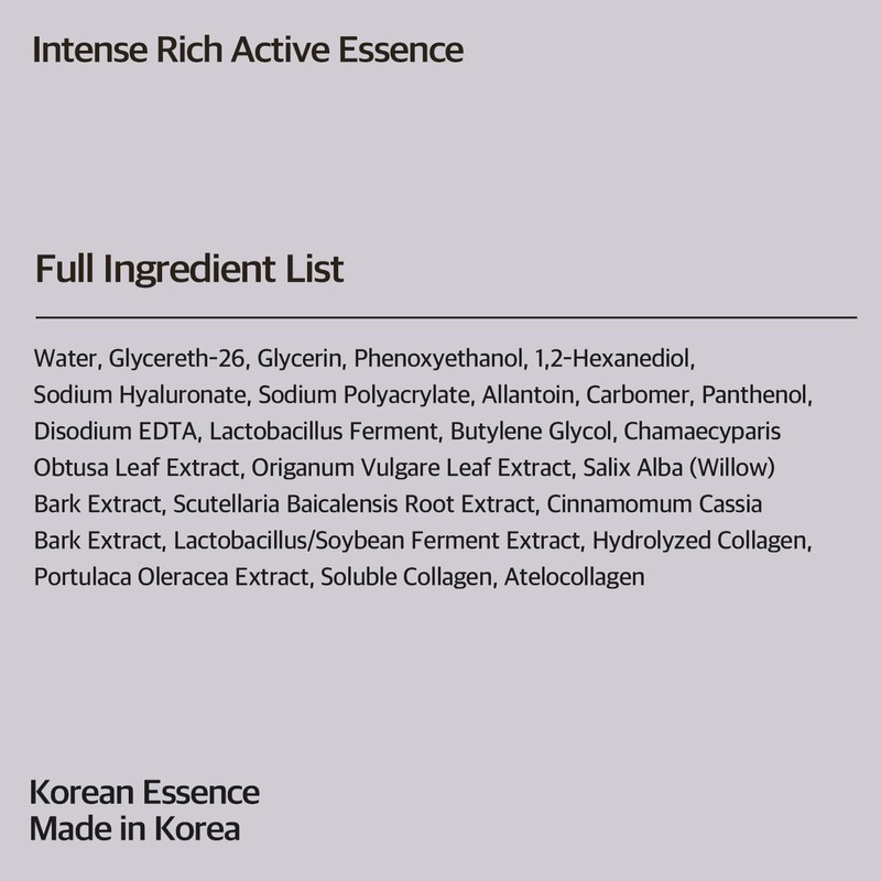 Intense Rich Active Essence 4.23 fl oz - Hydrating Korean Essence with Hyaluronic Acid, Collagen & Niacinamide for Soothing and Barrier Support