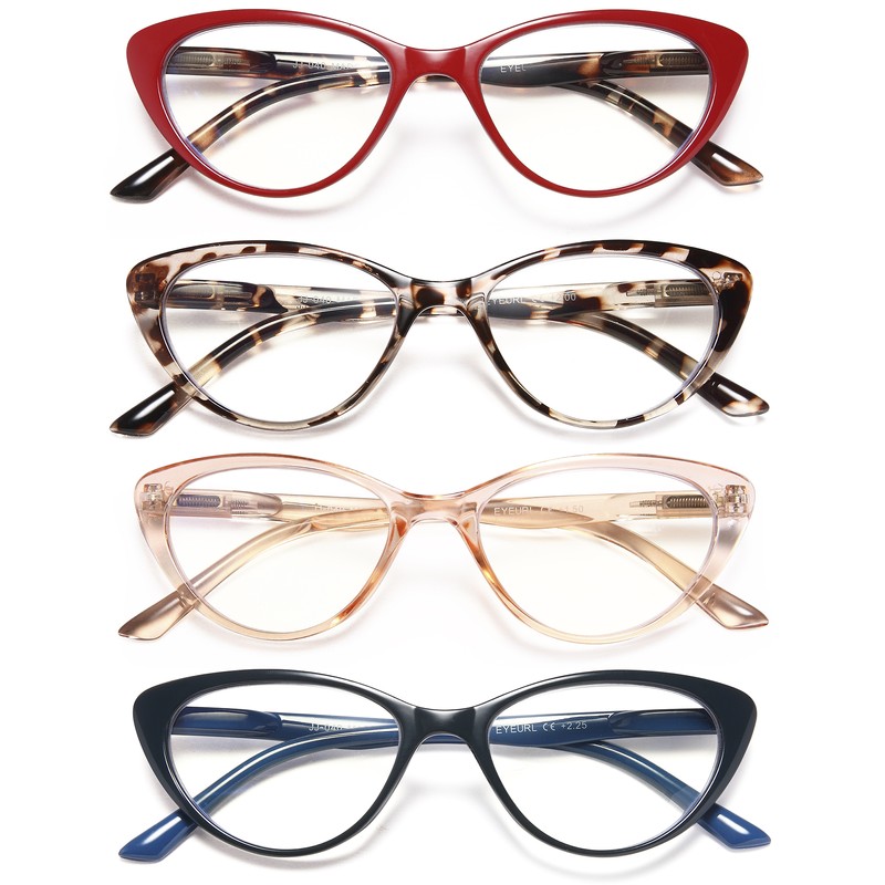 EYEURL 4-Pack Cat Eye Reading Glasses for Women- Blue Light Blocking Readers with Spring Hinges,Anti-Glare/UV Rays Reading Glasses,0.5