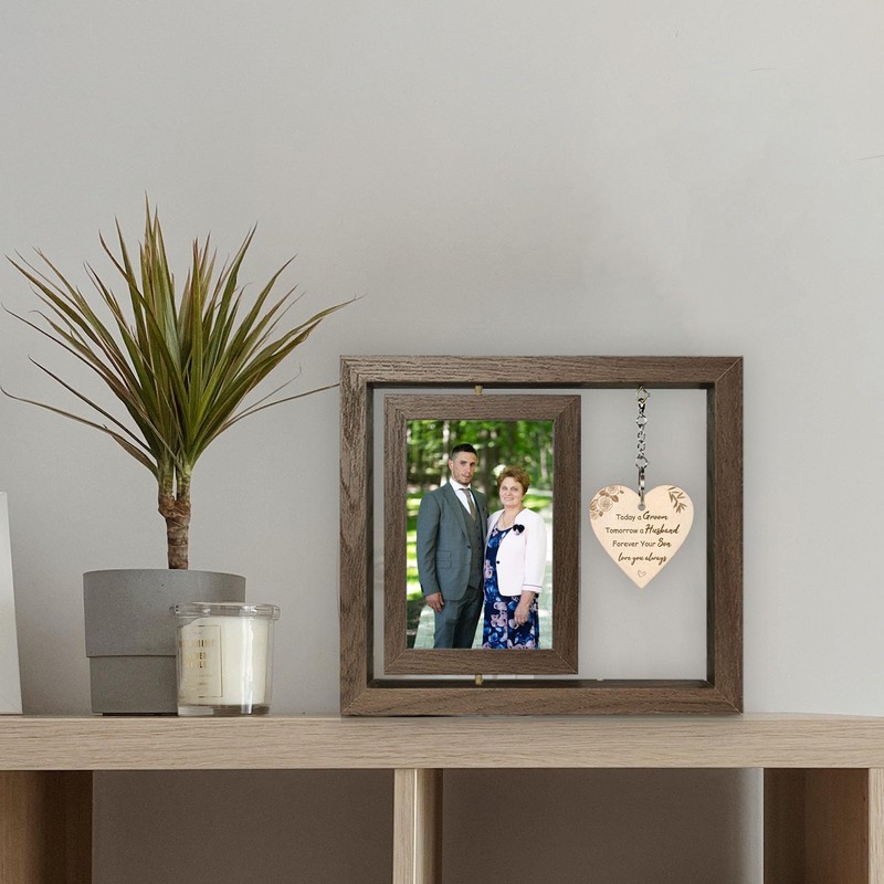 - Sturdy Wood Material: 360 Degrees rotating picture frames are made of lightweight wood with a unique design vintage wood texture finish and real glass cover, making quality wedding gifts for the parents of the groom