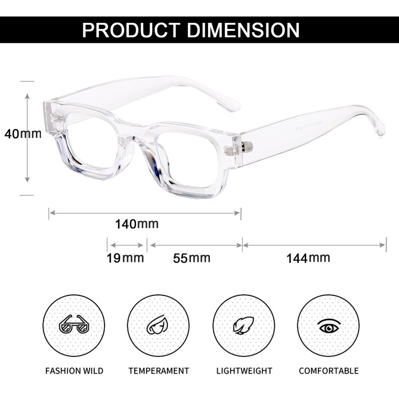 - The thick square frame and the classic design of the integrated nose pads are suitable for daily wear by people of different styles, and are versatile for men and women.