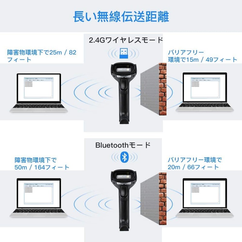 Eyoyo Barcode Reader, Barcode Scanner, Wireless Barcode Reader with Stand, Hands-free Handheld, Supports Both Wired and Wireless, 1-Dimensional, 2-Dimensional, QR Code, USB 2.4 GHz, Bluetooth Compatible, LCD Display Barcode Reading, Japanese Instruction