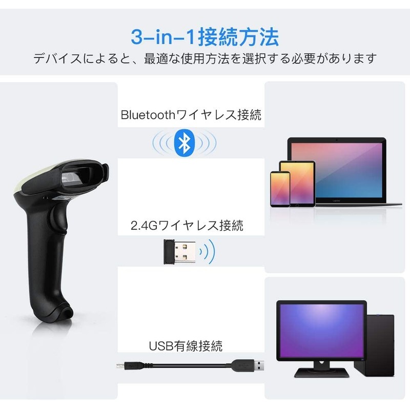 - 3-in-1 Connection Method: The Eyoyo barcode scanner supports 3 types of connections, including 2.4G wireless, Bluetooth and USB wired, so you can choose the connection method according to your device. Simply plug it into a USB port with a USB cable. No special driver required. Or if you want to use wireless, you can choose 2.4G and Bluetooth wireless, and you can easily get the wireless light that is free from the cable. Connects to iPhone, iPad, Smartphone, Tablet, Computer, Compatible with Windows xp / 7/8/10, Mac OS, Linux, Windows Mobile, etc