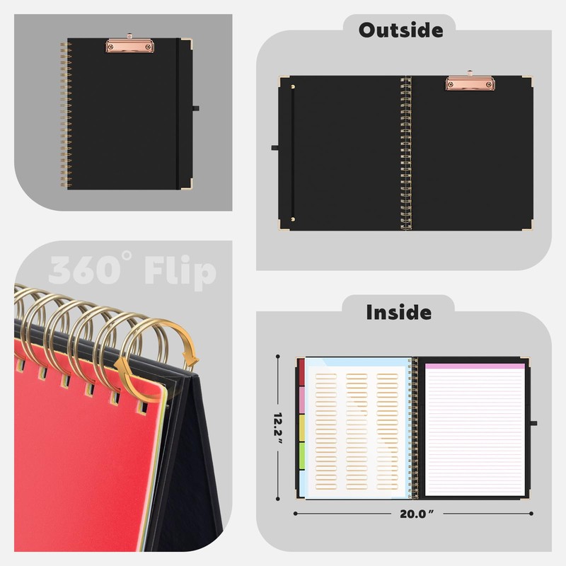 - 【Clipboard Size】Unfold size is 20"x12" spiral clipboard folder equip a 8.5"x 11" removable notepad. So it doesn't stop being useful when the paper runs out. The folding size is 10"x12", if you want something you can carry around the office to take quick notes, this is a super cute option
