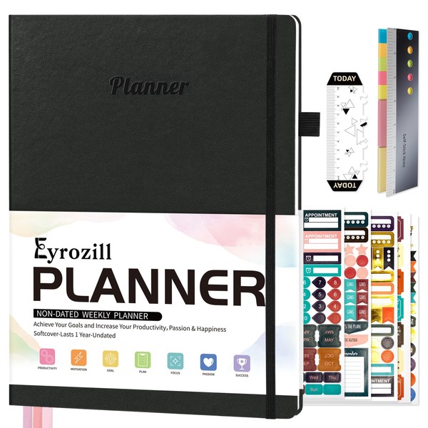 Eyrozill Planner 2024-2025 Undated Daily Planner 12 Months,Leather Weekly & Monthly Life Planner,A4 Organizer Notebook & 8.5 x 11 Productivity Journal– Leather Hardcover with Stickers for Working,Tracking