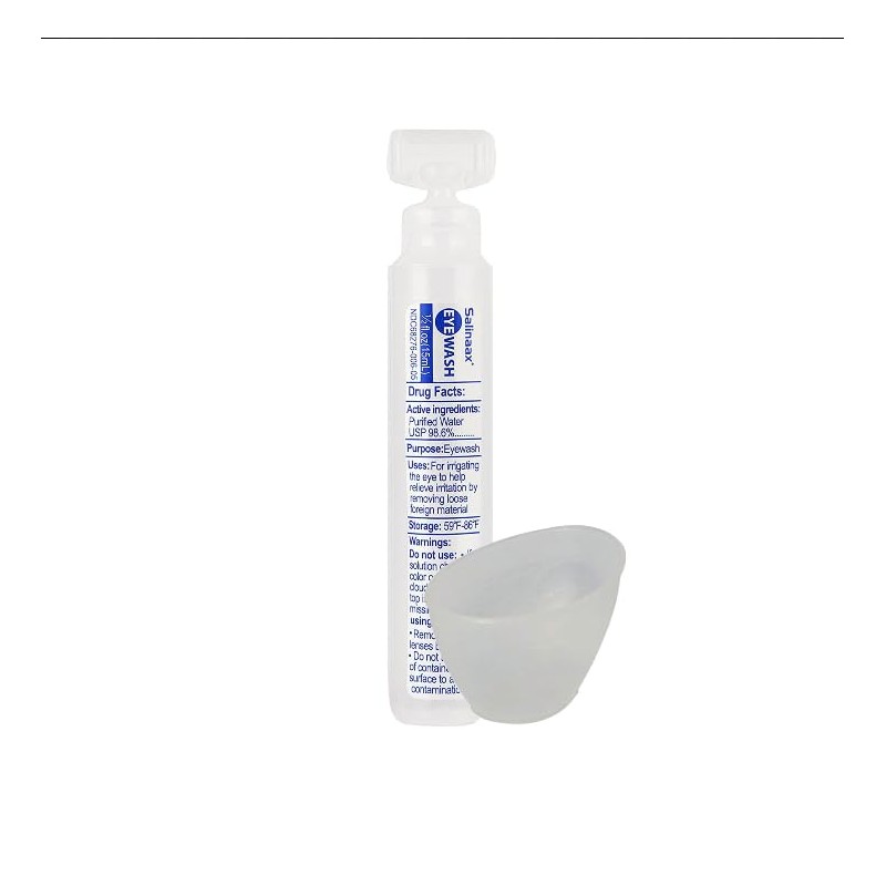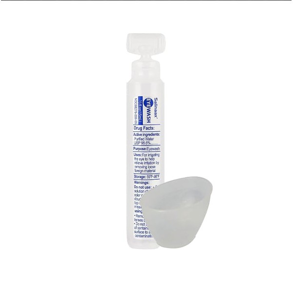 Buffered 1/2 oz Eye Wash and Cup. Use for Irrigating the eye to help relieve irritation by removing loose foreign material. Comes with one single use eye wash and eye cup. To use: Pour eye wash unto provided cup. Put head down and put filled cup under eye. Blink multiply times.