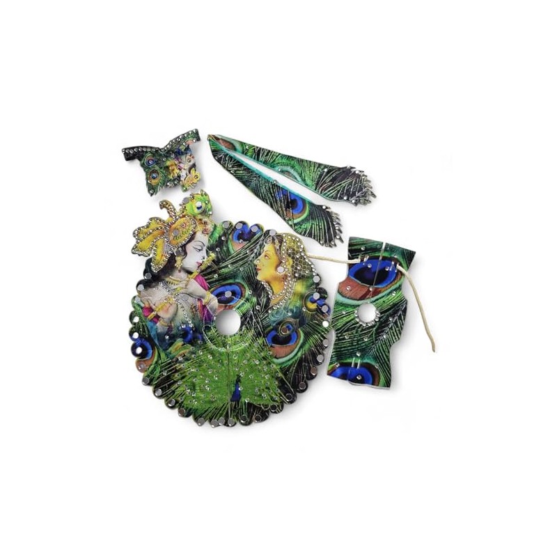 - Festive Decor: Ideal for decorating home shrines or temples, our Bejeweled Peacock Feather Poshak adds a touch of splendor and sacredness to Janmashtami celebrations. It serves as a cherished symbol of devotion and faith, enriching the spiritual experience and inviting divine blessings into the hearts and homes of devotees.