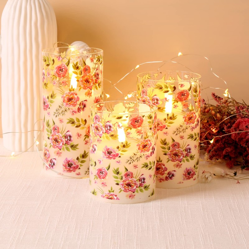 Eywamage Eywamage Floral Glass Flameless Candles with Remote, Flickering Battery Powered LED Candles D 3" H 4" 5" 6"