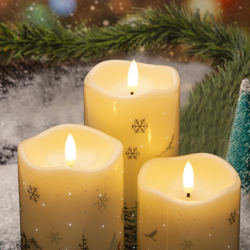 Eywamage - Velas de pilar de fibra óptica sin llama de ciervos forestales con control remoto, velas LED de Navidad, juego de 3 unidades