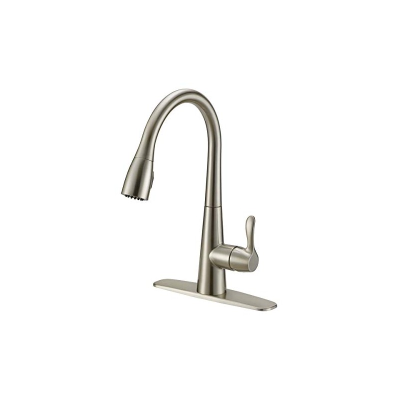 EZ-FLO 10703 Single Kitchen Faucet with Solid Lever Handle and Pull Down Spray, Brushed Nickel