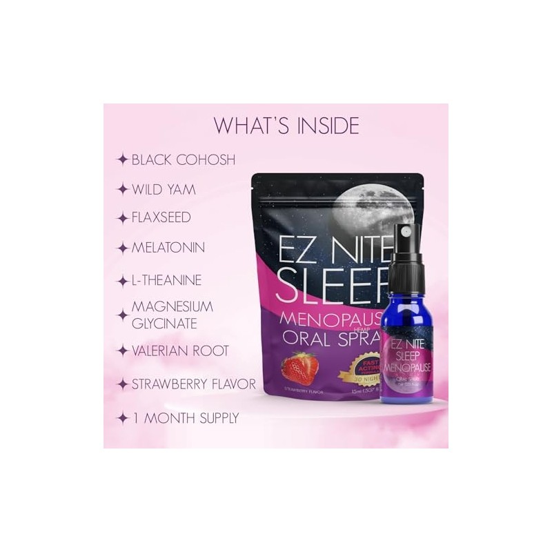 EZ Nite Sleep Menopause Oral Spray – Fast-Acting Menopause Symptom Relief with Black Cohosh, Wild Yam, Flaxseed, Melatonin, Valerian Root - 1 Month Supply