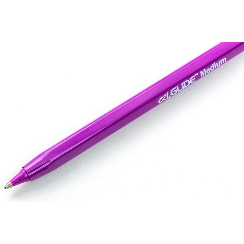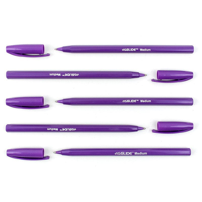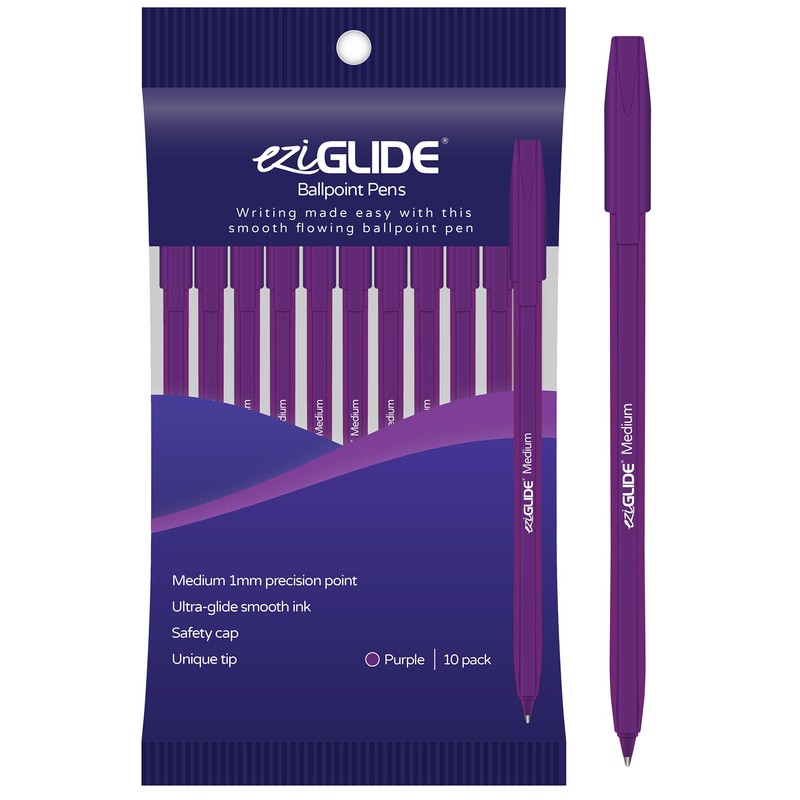 Eziglide Ballpoint Purple Pen, Pack of 10 Ballpoint Pens, Smooth Writing Action-Medium Point 1.0mm Coloured Pens Multipack - Ball Point Pens Ideal Pens for School, Home or Work Stationery Supplies
