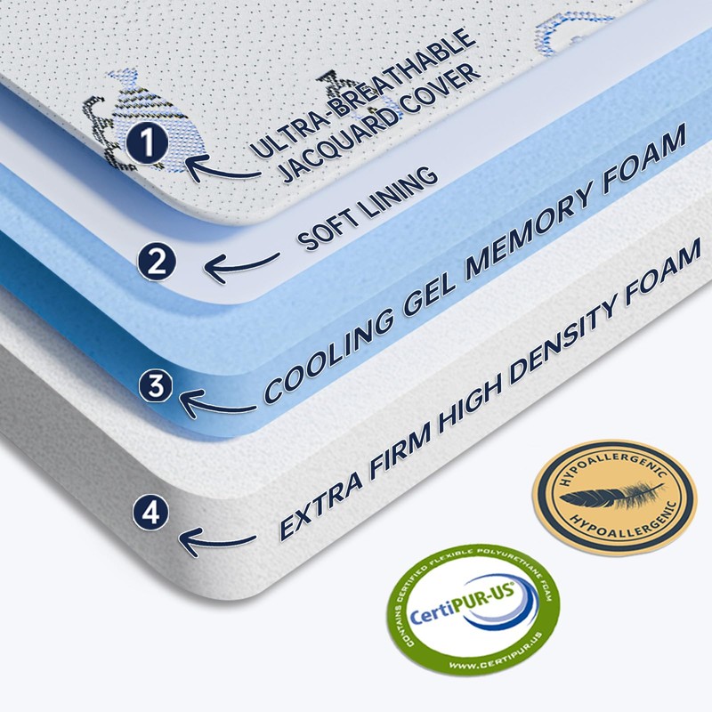 - Double Sided:Pack n play mattress topper with a firm, high quality foam and a soft cooling gel memory foam give different support to babies, firm for little babies and soft for toddlers