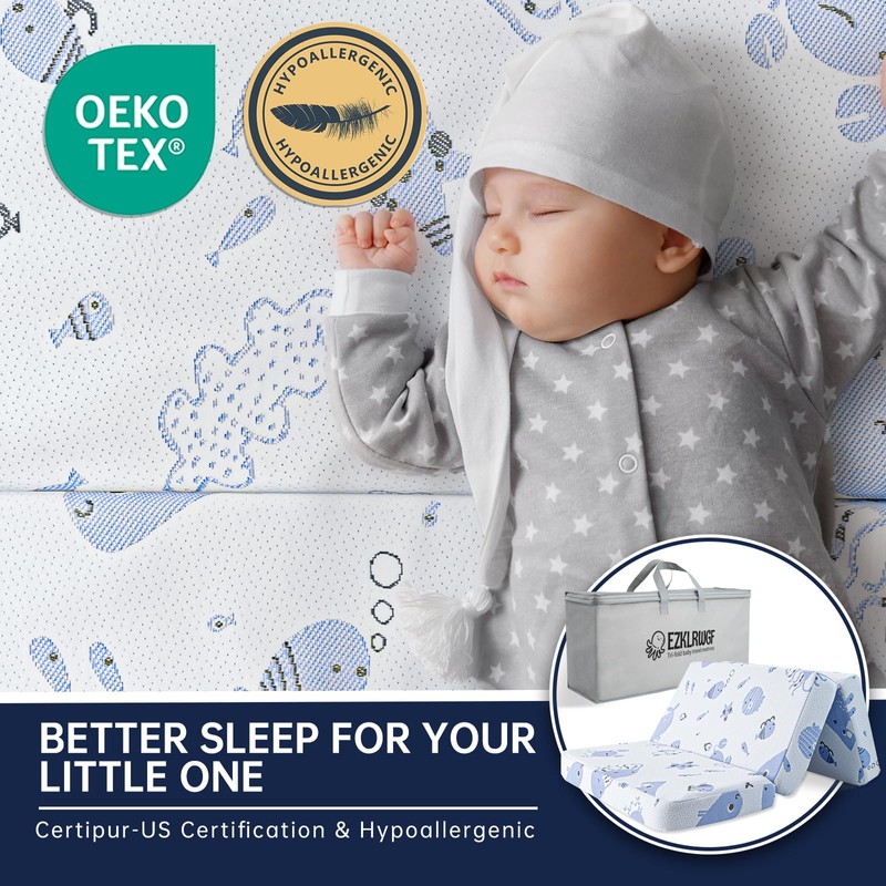 - Portable: A mattress for a pack and play can be folded and comes with a carrying bag, which is lightweight and portable, saving storage space. So whether you are traveling or visiting relatives or friends, you can provide a familiar sleeping environment for your little one