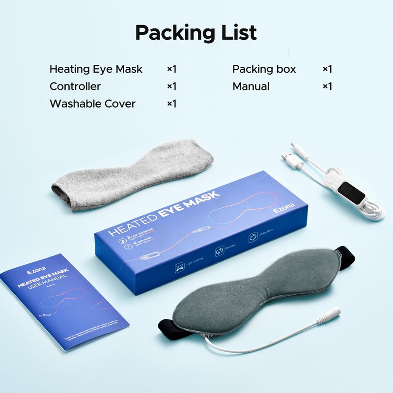 - Washable cover & Soft Eye Touch : The removable cover can be washed by hand to prevent infection and be cleaner.The heated eye mask and washable cover are made of cotton fabric, which is soft, very comfortable to wear, breathable, and gentle on the delicate eye area.