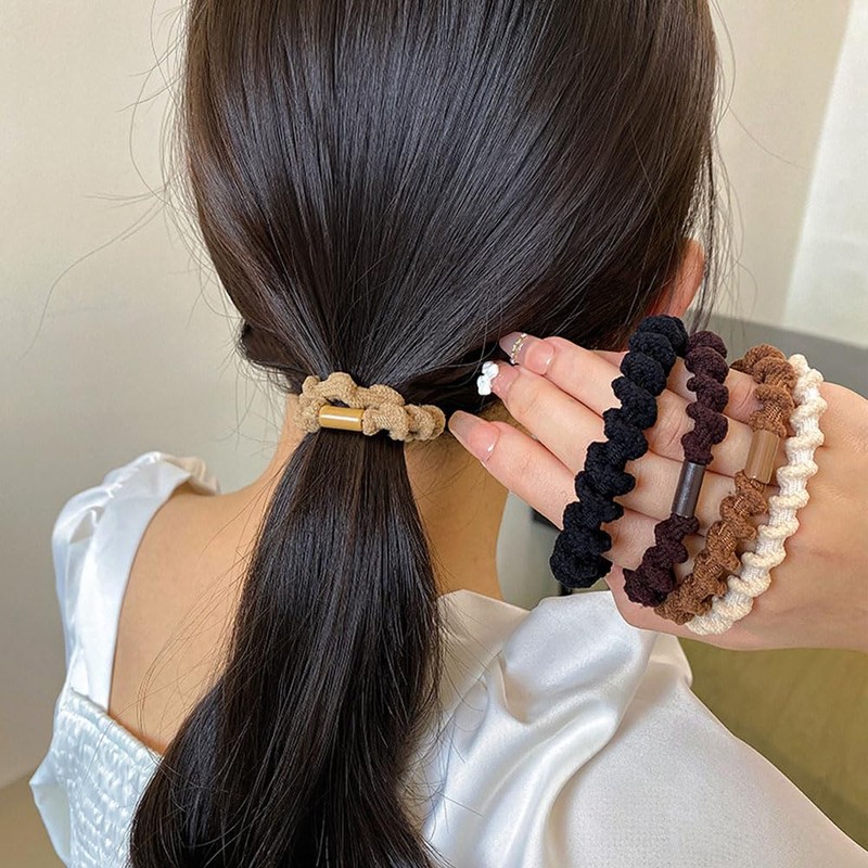 Ezppuu117 Women's Hair Scrunchies Black Hair Bobbles for Women Men Thick Hair Elastic Cable Scrunchies Ezppuu117 (A-spiral brown-10)