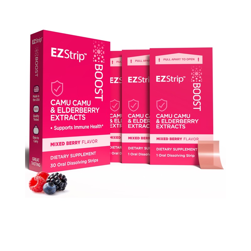 EZStrip Boost Camu Camu and Elderberry Extract Strips.