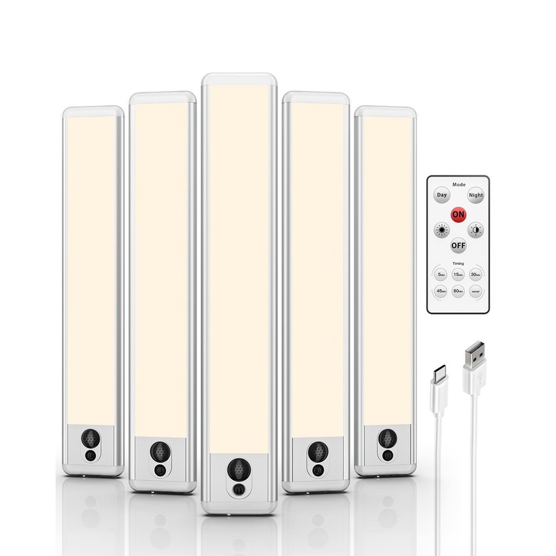 EZVALO Under-Unit Light Kitchen LED 23 cm, Under Cabinet Lighting with Remote Control 1600 mAh, USB Rechargeable Motion Sensor LED Sensor Light, Cabinet Lighting for Kitchen, Warm Light (Pack of 5)