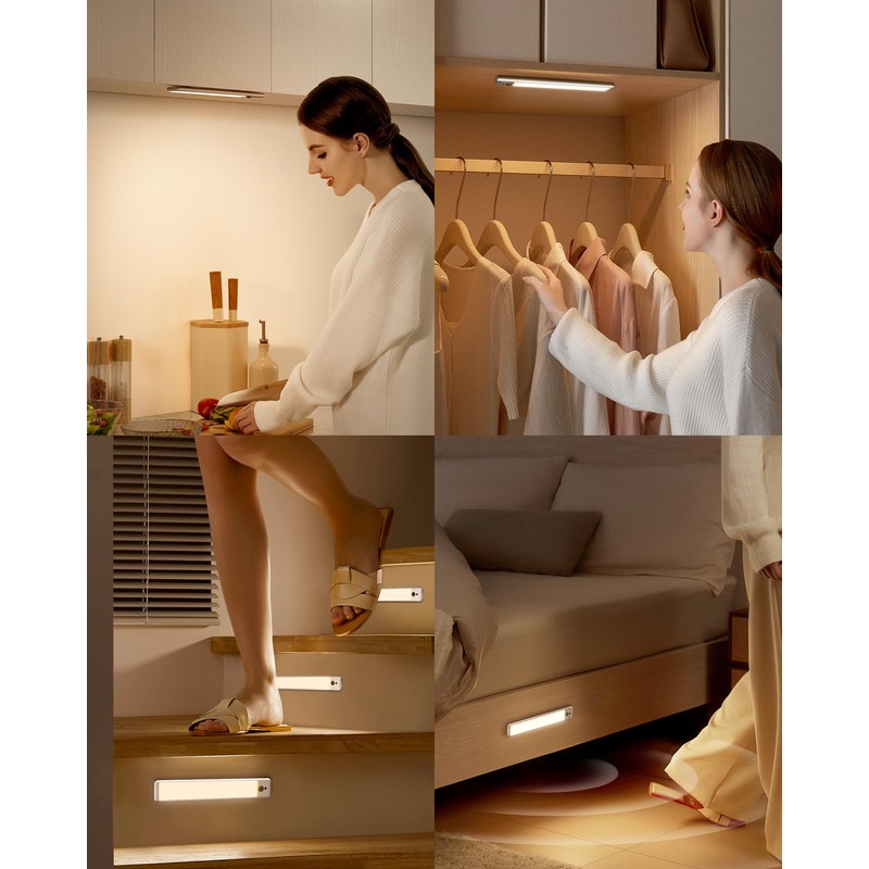 - Energy-saving design: The cabinet lighting LED motion sensor uses grade A+ lithium polymer batteries with high energy density and a long service life. With a lifespan of up to 60 days in auto mode, the lights are ideal as cabinet lights, wireless under cabinet lights, wine cabinet lights and display lighting, rechargeable under cabinet lighting.