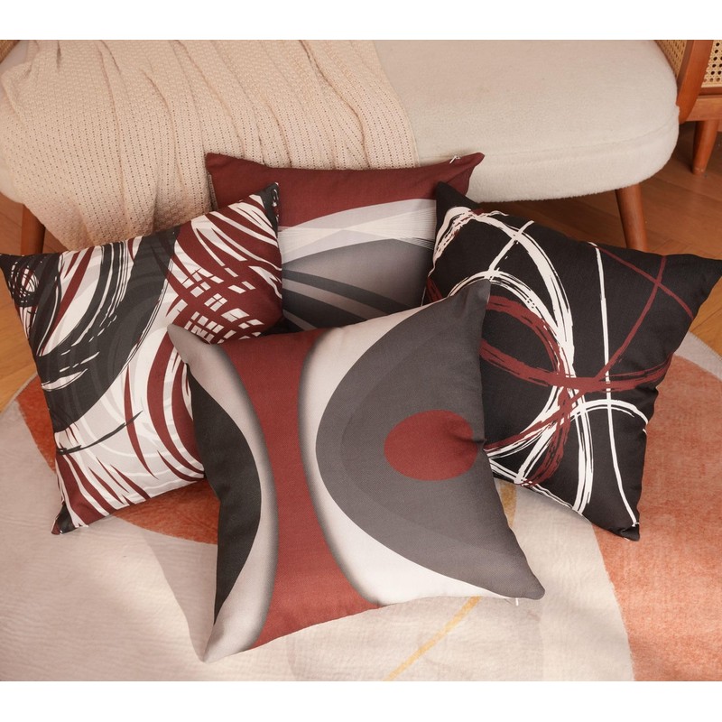 Product:4 Pack Modern Geometric Wine Red Black Throw Pillow Cover