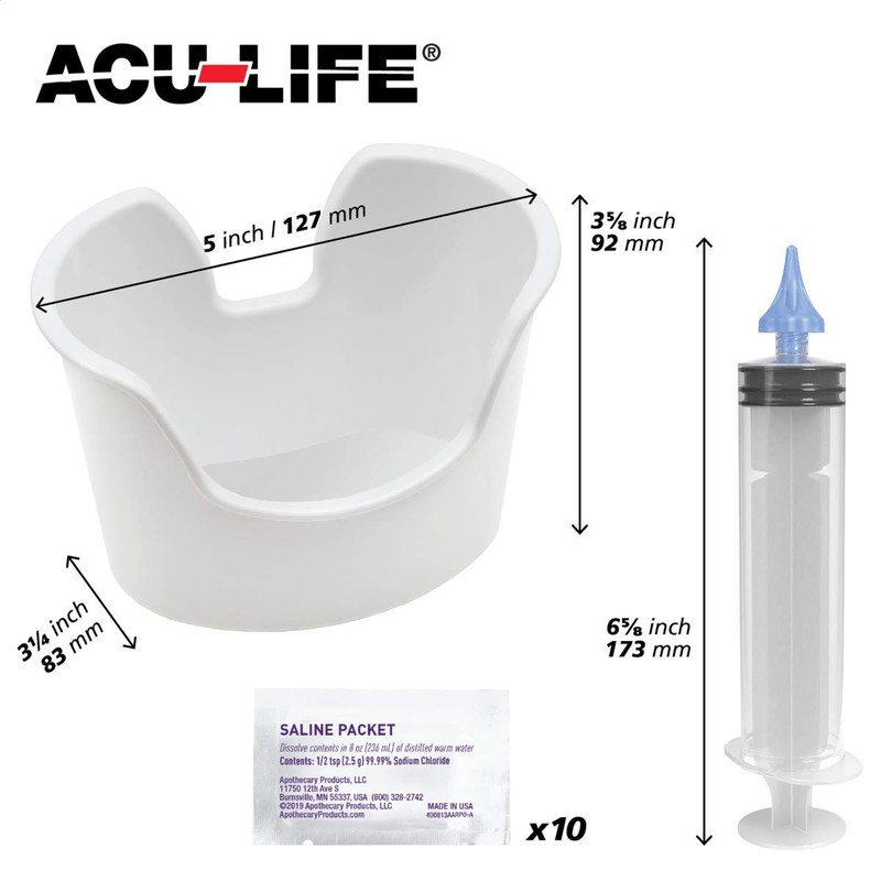 Acu-Life Ear and Ear Wax Cleaner for Humans, Includes 10 Saline Packs, Syringe with Tri-Stream Tip and Basin