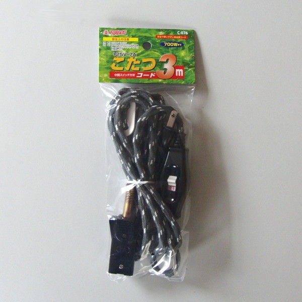 F-FACTORY Kotatsu Cord with Intermediate Switch, Power Cord for Kotatsu 9.8 ft (3 m), Max 700W, 7A-125V /C-076