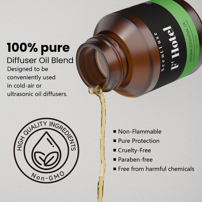 F' Hotel Essential Oils for Aromatherapy Diffusers - Inspired by Four Season Hotel Home Luxury Scents, Premium Fragrance Oil for Ultrasonic and Waterless Diffusers and Crafting - 15 mL