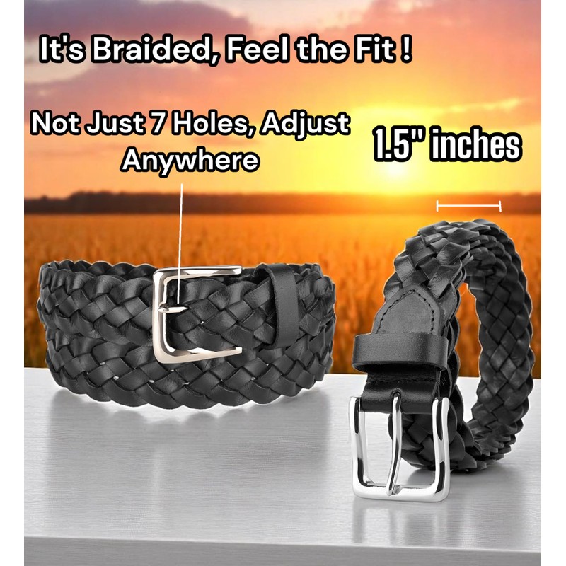 - TrueFit Design: Full-grain leather braided belt with buckle lock that adjusts anywhere on the belt for a precise, comfortable fit