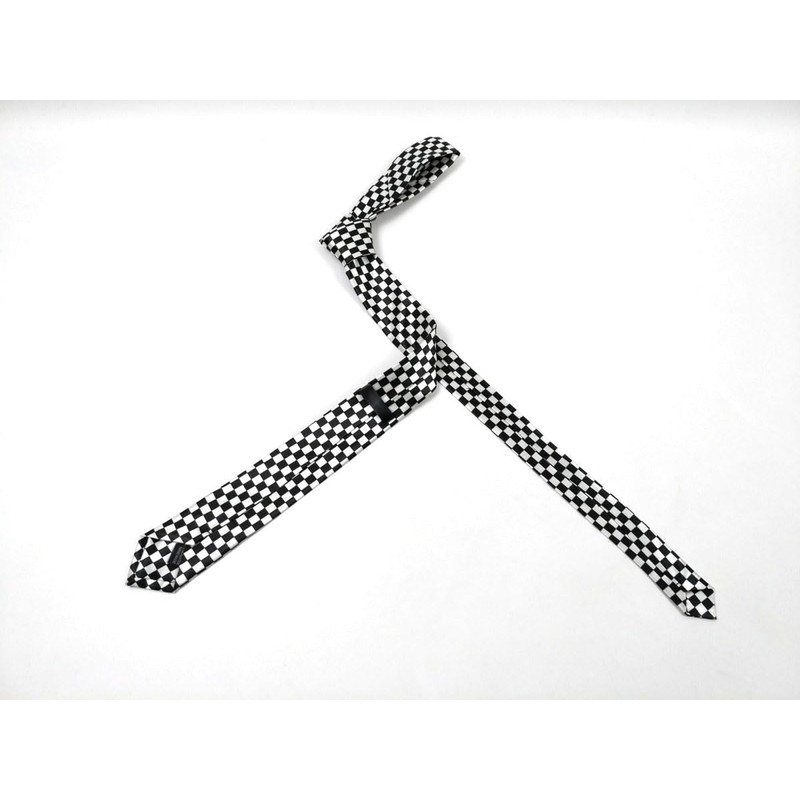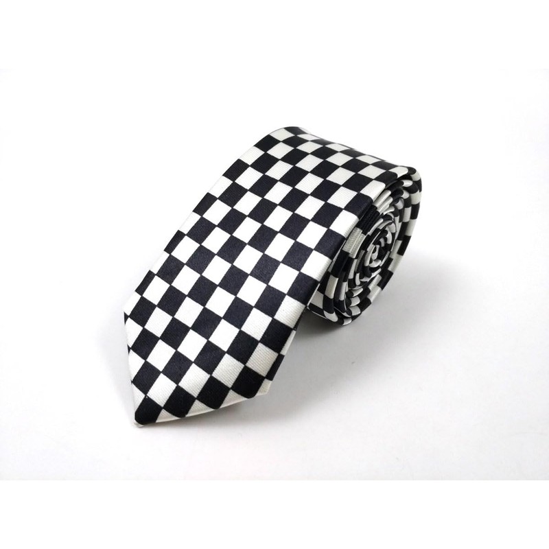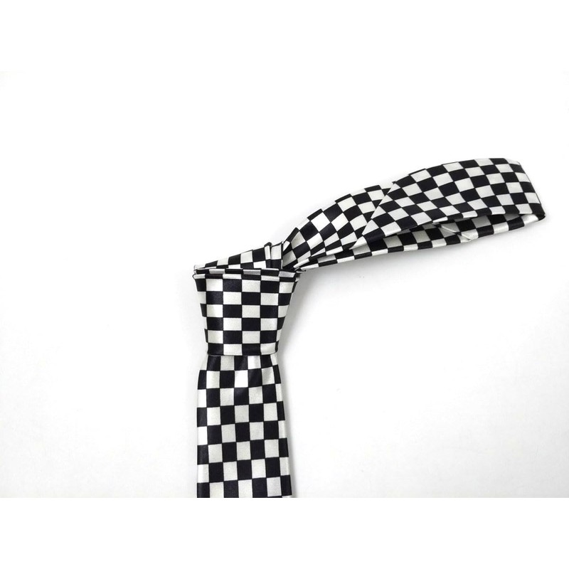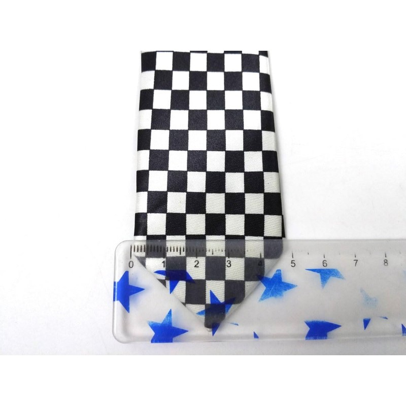 F NODE Necktie, Checkered Pattern, Black and White, For Parties, Width 2.0 inches (5 cm), black&white