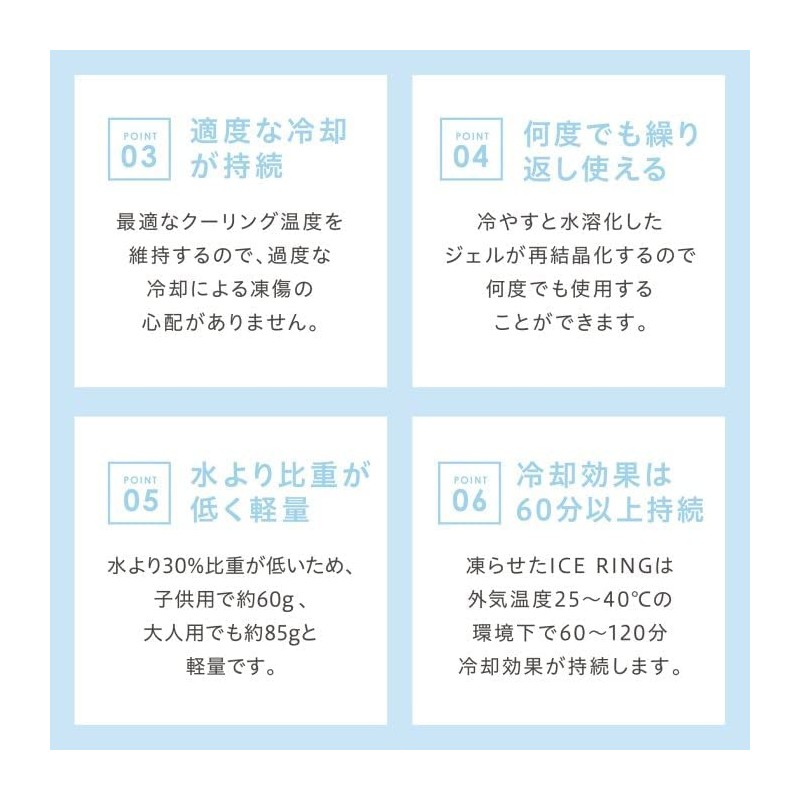 ICE RING is a product that absorbs heat and dissipates heat while freezing and melting (solid) repeatedly depending on the temperature environment.