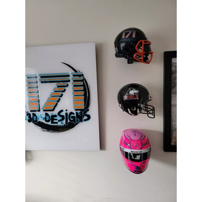 F1 1/2 Scale helmet wall hanger. 3d printed from PLA+, display holder, mount