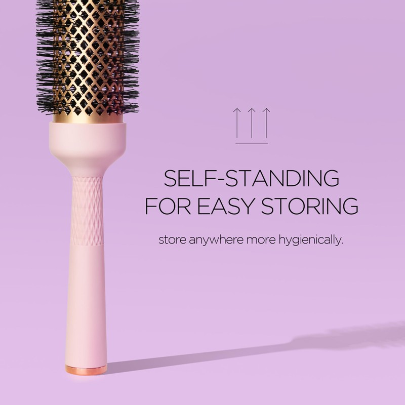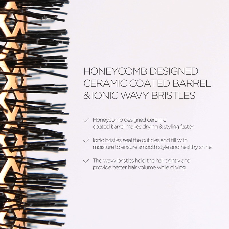 F3 Systems Wavy Thermal Brush(1.7 Inch), Cut Drying Time,Self-Standing Round Quick Styling Brush, Great Blowout, Ceramic Coated/Ionic Thermal Barrel,Blowout Volume, Wave Styler