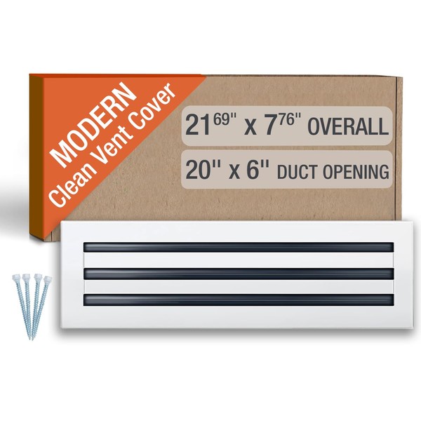 FA-STAR Clean Modern AC Vent Cover 20 x 6 (Duct Opening Cutout) - Decorative White Air Vent - Standard Linear Slot Diffuser - Register Grille for Ceiling, Walls & Floors - All Aluminium