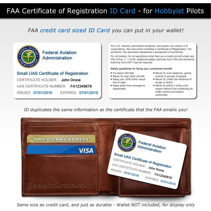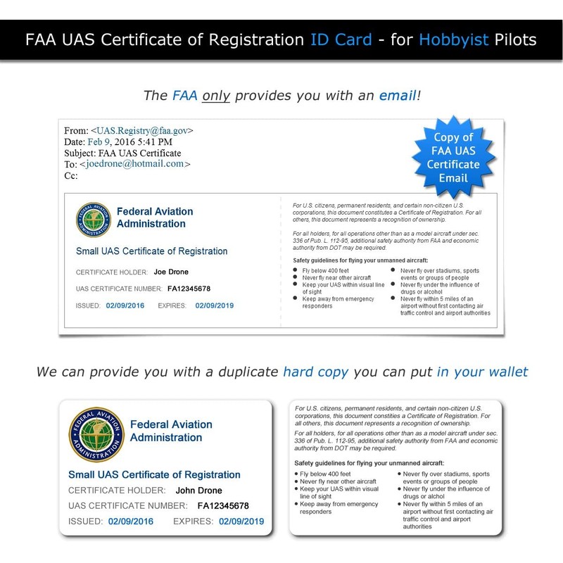 - FAA Hobbyist ID card duplicates FAA email and is made of 30 mil PVC for maximum durability