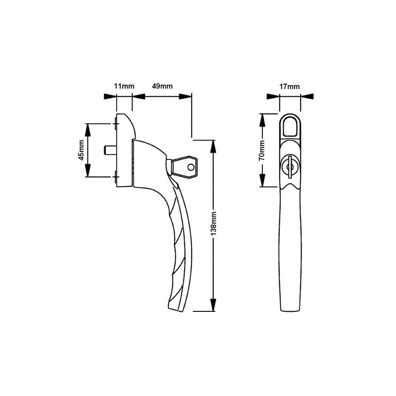 - Supplied with x1 key. Not supplied with fixing screws.