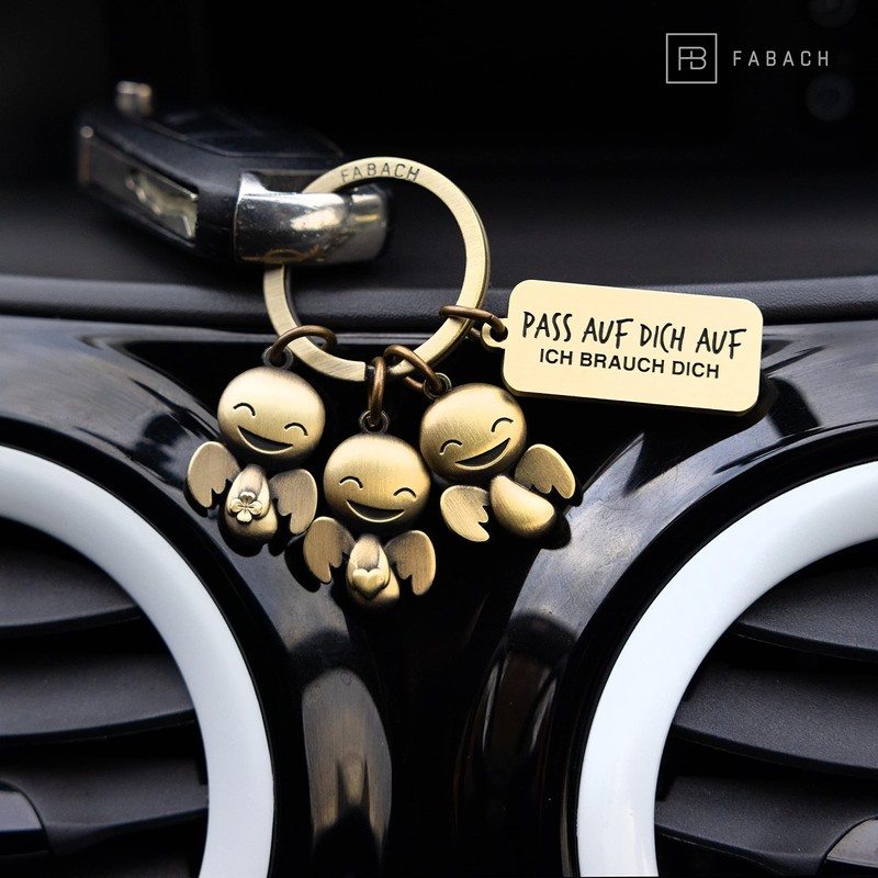 FABACH Guardian Angel Keyring, 3 Angels with Engraving – Car Key Ring Made of Metal with Engraved Message For Drivers – Gift Lucky Charm, Car Driving Licence – Your Guardian Angel