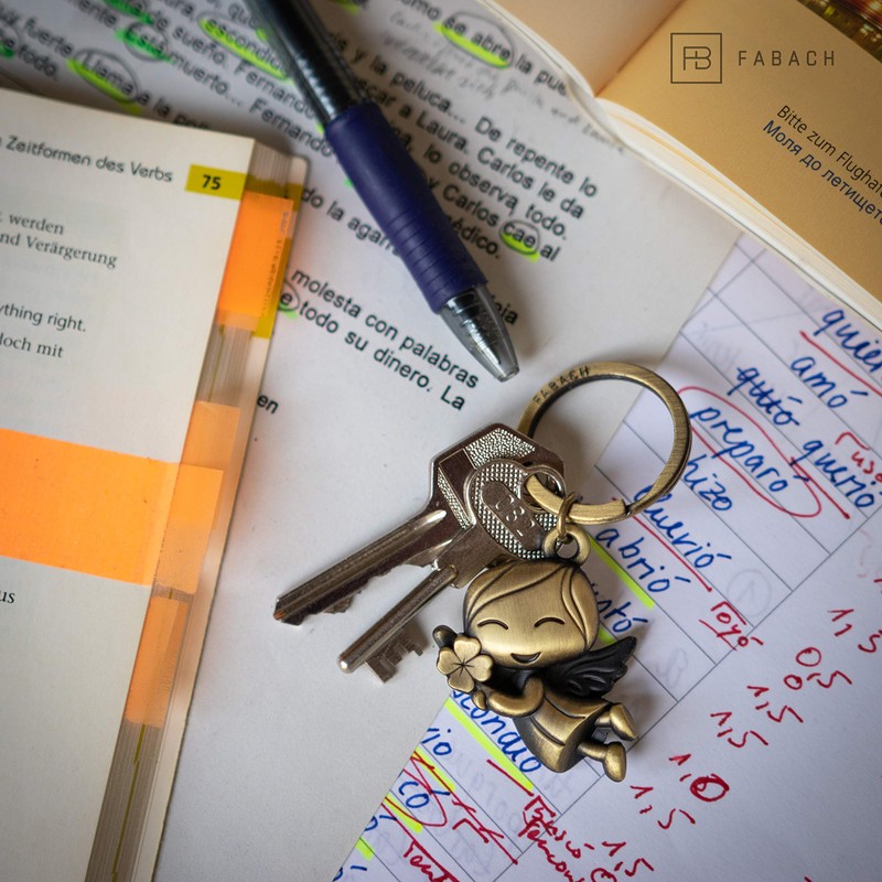 The cute "Lucky" guardian angel keyring from FABACH signifies love, happiness and a zest for life.
