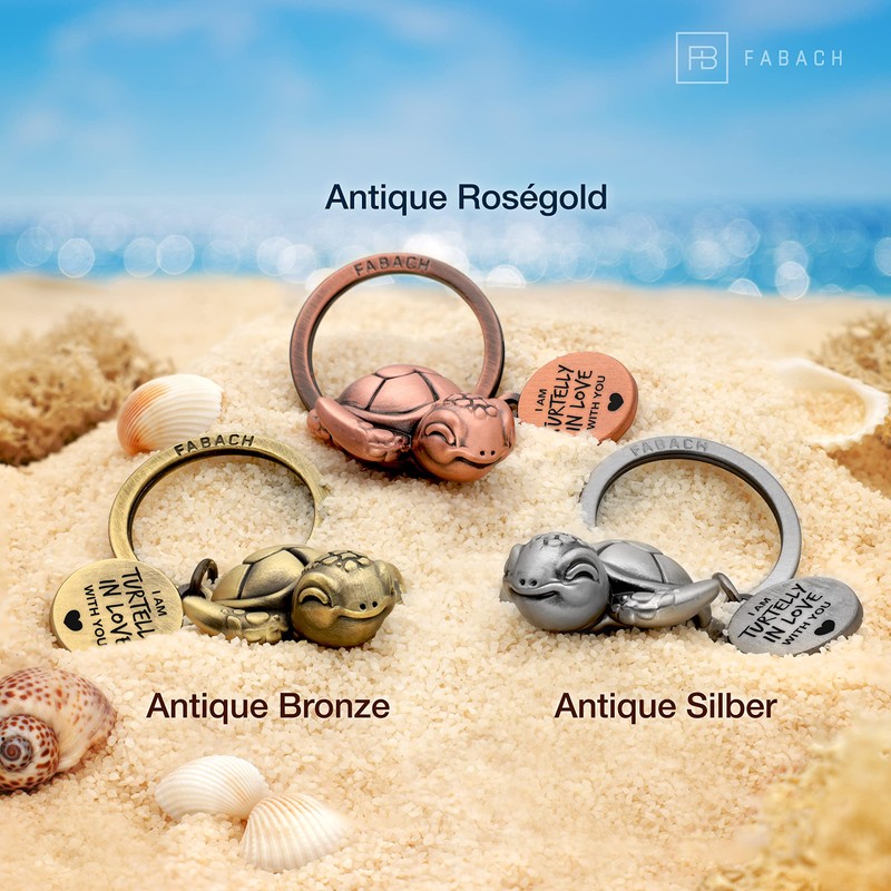 FABACH Turtle Key Ring Snappy with Heart and Engraving – Cute Turtle Keyring – Love Lucky Charm Turtle as a Gift for Partner – Turtelly in Love, Antique bronze, Casual