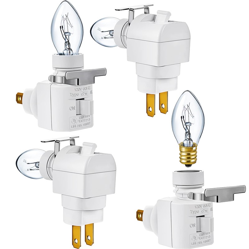 - Enough to Use: you will receive 4 sets of plug in night lights, and each set includes a plug with on/ off switch, a 7W transparent bulb, and a metal clip, complete and enough for daily use and replacement