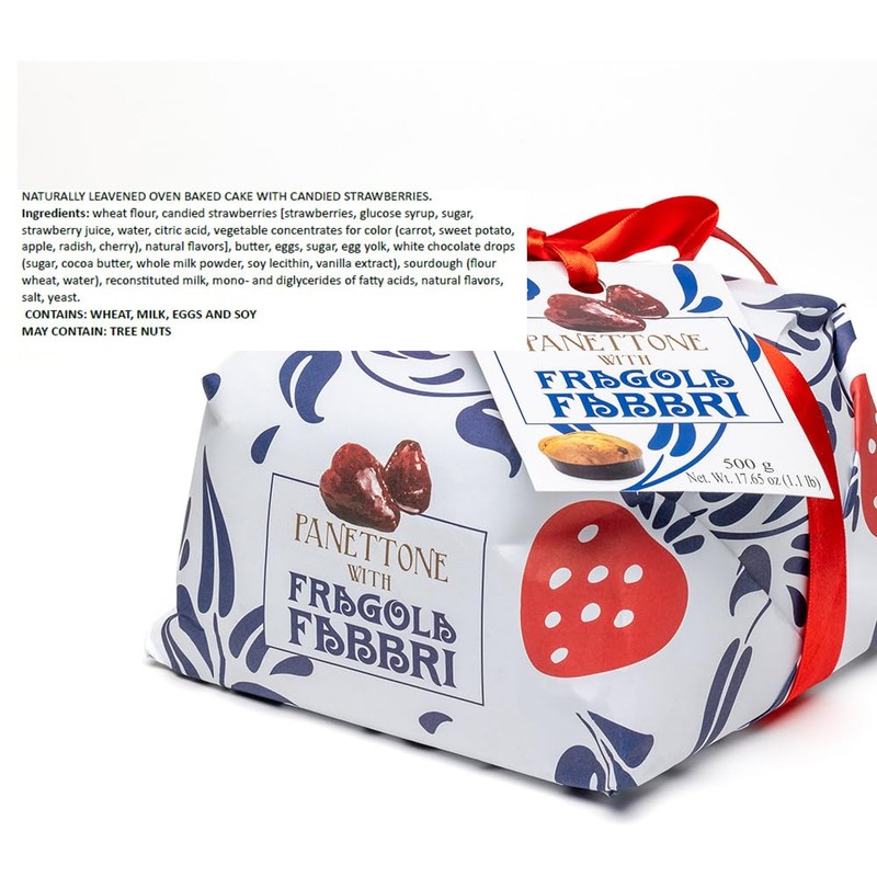 - Contains (1) 1.1lb of panettone with Fabbri Strawberries