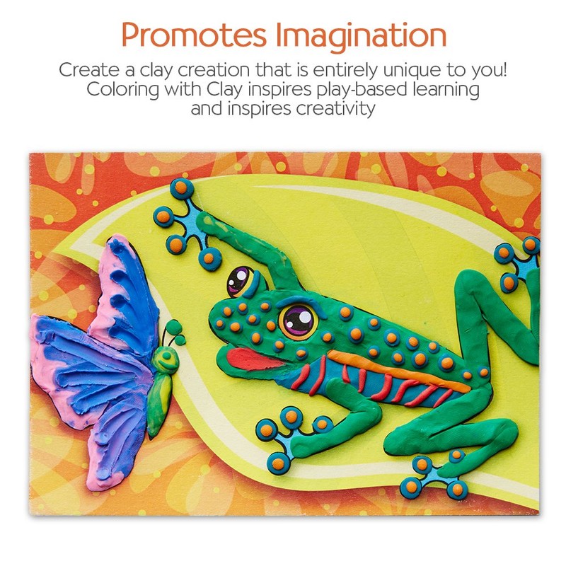- CREATE WITH CLAY - Create vibrant jungle themed art with modeling clay. The perfect art set for kids who love to work with their hands! Color in 4 design boards and make them pop with texture and depth.