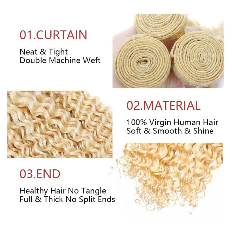 - 613 Blonde Human Hair Bundles Advantage: Jerry Curly Human Hair Bundles, Can Be Dyed, Bleached, Jerry Curly ened, Curled, Durable, Reusable.
