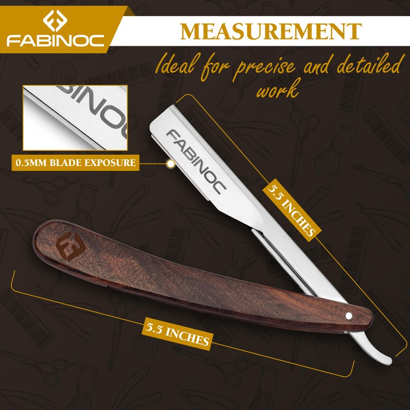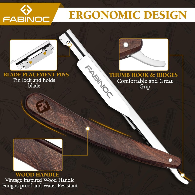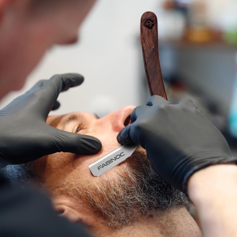 FABINOC® Cut Throat Razor Kit - Professional Barber Straight Razor with Wooden Handle - Single Edge Blade Shaving Razor for Moustache & Beard - Pouch Included - Blades NOT Included (SILVER)