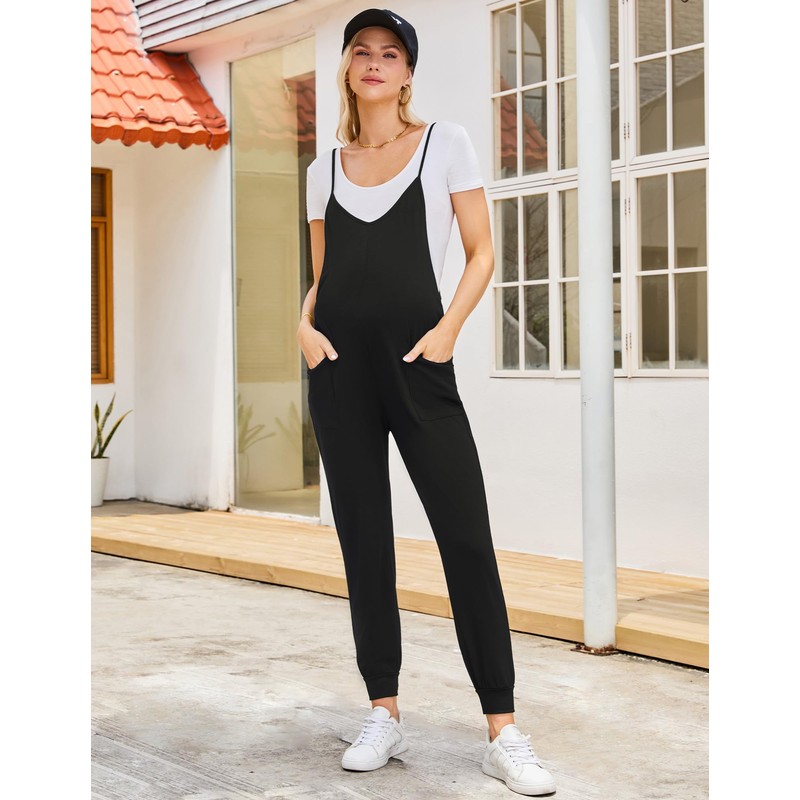 Women's Maternity Overalls Comfy Stretchy Sleeveless Rompers.Suitable for a variety of occasions and cater to women at all stages of pregnancy, as well as those who are not pregnant. A flattering v-neckline, spaghetti straps, and 2 side pockets. Loose fit accommodates the growing belly and allows for unrestricted movement
