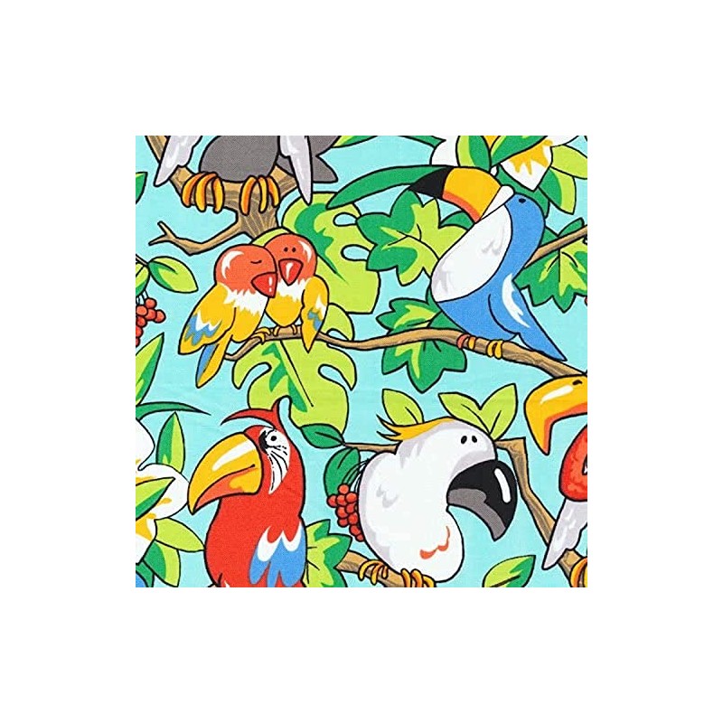 Fabri-Quilt Zany Zoo Paradise Birds Parrots Light Blue Premium Quality 100% Cotton Fabric by 1/2 of a Yard.